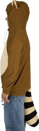 The Tanuki is a Japanese raccoon dog, and while they have been popular in Japanese mythology for centuries, they wern't known in Western culture until Super Mario Brothers 3 came out. Then everybody knew that putting on the furry suit would let you do all kinds of crazy stuff. This fun Racanookie hoodie is 100% polyester, and with a generous stuffed hood and tail, you'll be able to create mischief all day long.