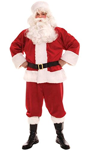 Men's Traditional Santa Claus suit is Perfect for any father looking to surprise their kids on Christmas morning. Machine wash with cold water and tumble dry low, One size fits most adult men from size 40 to 44. Toy bag, Beard, wig, santa boots not included.