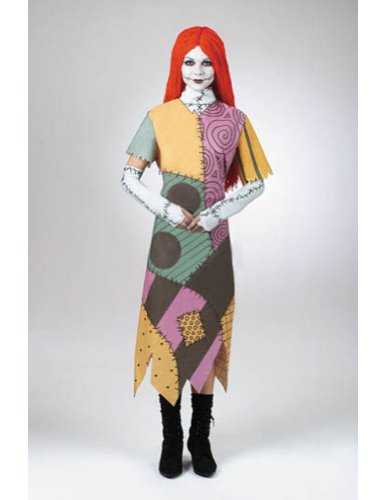 Both beautiful and scary, this costume is modeled after the character Sally in Tim Burton's chilling movie The Nightmare Before Christmas. This costume consists of Multi-color patchwork look dress, glovettes and wig. Footwear and makeup not included.