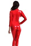 • Gothic Punk Red Wetlook Shinny Faux Leather Catsuit Bodysuit Jumpsuit Zipper Front