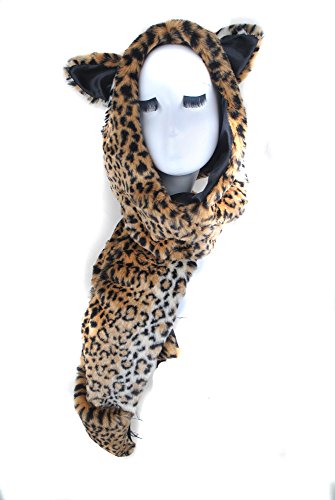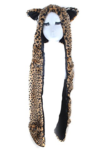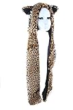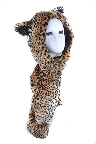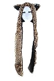 - Animal Leopard Faux Fur Winter Hat Hoodie Hats Beanie Scarf Paw Gloves Pockets