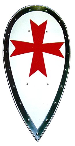 This authentic Knight's Templar Shield is a full size historicall accurate reproduction of the famous shield. Featuring high quality hand-painting of a red Knight's Templar symbol on a pure white background on a solid steel shield, this design surely stands out as one of the highest quality shields. It is all hand-made construction out of 18 gauge steel in Italy and specially imported. The edges of the shield have rolled steel and the back has a handle for practical use. This is one shield you'll want in your collection!