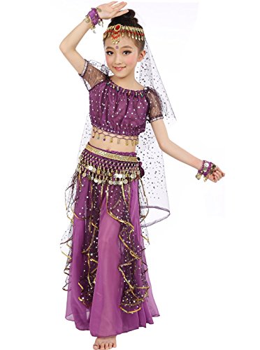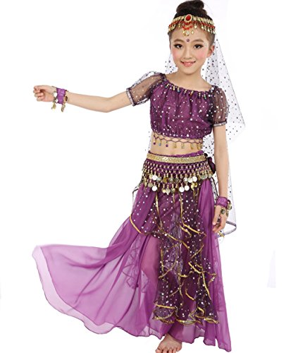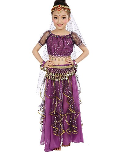 - Kids Belly dance costumes set,Silver/Golden waist chain for choose,
