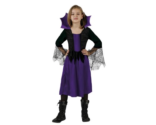 Este disfraz de vampiro para Halloween incluye un vestido de color negro y violeta. Las mangas son largas y anchas en los extremos. (Medias y zapatos no incluidos). Este disfraz es ideal para asustar a tus amigos en la fiesta de Halloween.