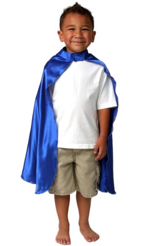 Blue cape is 24″ long and has a velcro neck closure. Versatile size for kids age 3 and up.