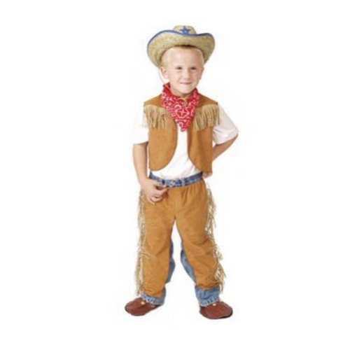 Get ready for your next round up in our Cowboy costume set. You'll receive a pants, vest, bandana (may be solid red or bandana print). Note that hat is not included. 100% polyester. Hand wash, lay flat to dry. Imported