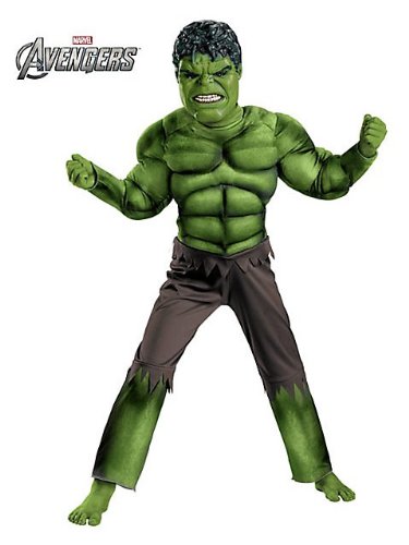 - The child Hulk Movie Classic Muscle comes in sizes X-Small, Small, Medium, Large.