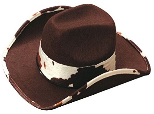 Dress up like a true cowboy in this trendy cowboy hat. The brown cowboy hat with cow skin trim is made of felt.