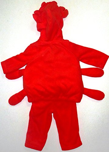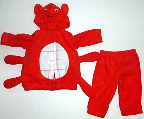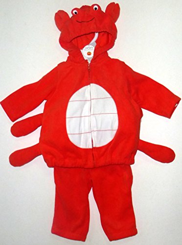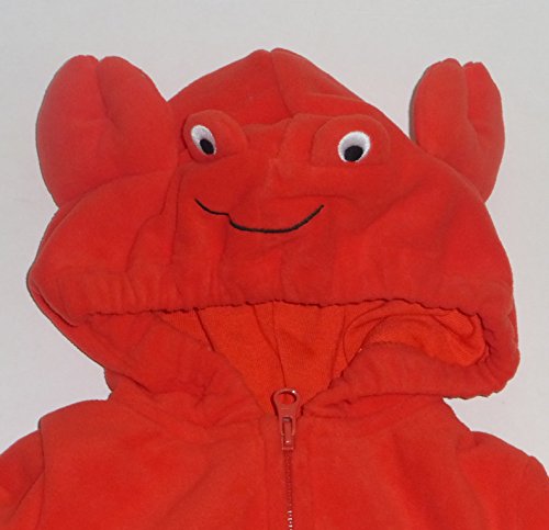 Cute meets crabby in this adorable Carter's hooded costume, featuring a warm fleece red cardigan with long sleeves and zip front, and pants with elastic waistband. Baby will be ready to “snap” up some treats in this red microfleece top of polyester with polyester fill; a cloth tag is sewn in with size and care instructions. The attached hood is jersey-lined and has embroidered crab face with 3D eyes, and 3D legs and claws are sewn on the top.
