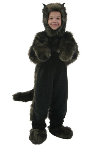 - Includes: Black furry head cover with attached ears, Black furry body suit with an attached tail, Mitts, Shoe Covers