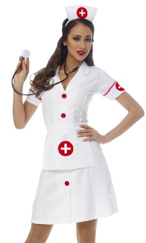 • Adult Costumes – This Classic Nurse Costume includes the white dress with red buttons, turned cuffs accented with red cross designs, matching apron and the headpiece. Pair this up with a Doctor costume for a couples look that's sure to be a hit!
