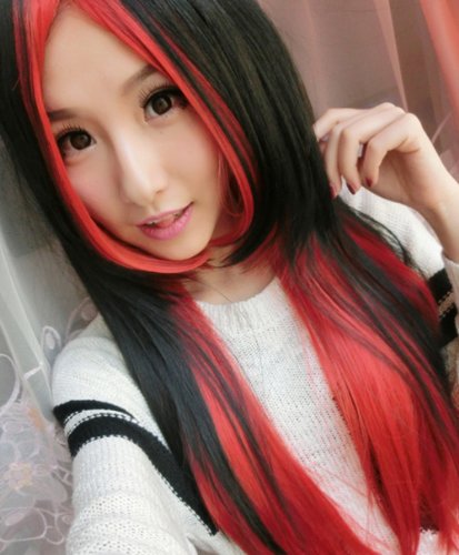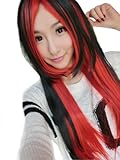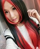 1x Charming Cosplay Style Long Straight Hair Black Red Wig Cosplay Wigs