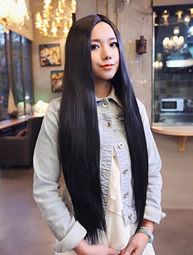 MapofBeauty Special Natural Long Straight Wigs Diagonal Bangs Wigs-Black-Ladies