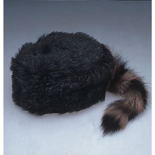 This adult sized Coonskin Cap has a faux fur top with a real fur racoon tail.