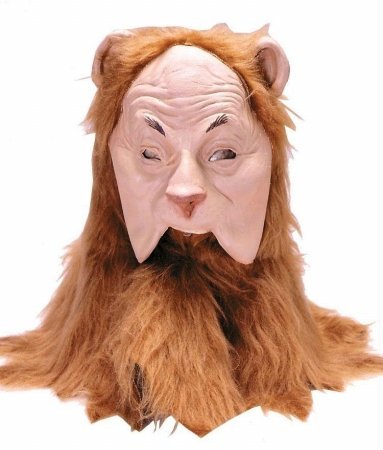 Over-the-head mask from a childhood favorite, Wizard of Oz. Face front is latex. Lower jaw area is cut out for ease of talking. Attached plush fur covers back of head in a golden lion mane. Box Dimensions (in Inches). Length : 14.00. Width : 11.00. Height : 4.00