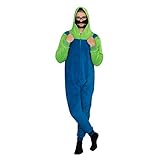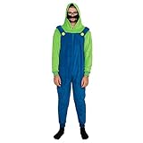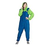 Officially Licensed Adult Zip up Super Mario Brothers Luigi Green and Blue Costume Jumpsuit