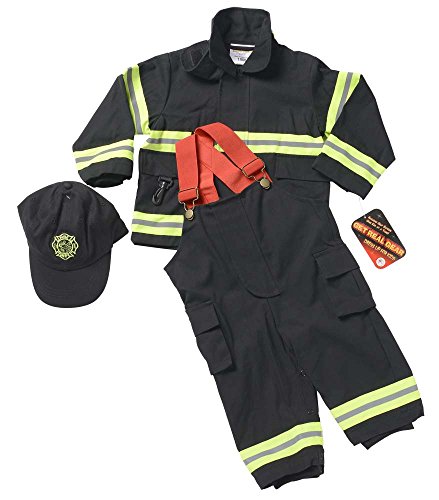 It's HOT! HOT! HOT! The most official looking bunker gear for kids anywhere. The Jr. Firefighter suit by Aeromax is sure to make little kids into big heroes. Includes: Adjustable bib overalls with pockets & reinforced knee patches and adjustable suspenders. Coat with hook and loop with zipper closure, pockets, authentic gauntlet cuffs, & reinforced elbow patches. Striping has a reflective element to keep kids safe in the dark. Helmet sold separately. Also available in color Tan (on Amazon). Aeromax quality items make great gifts for girls and boys. This item has been tested to meet applicable USA safety standards for children's products.