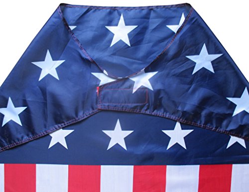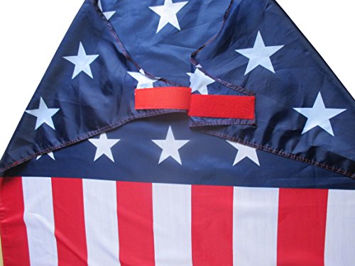The Americapes® “Old Glory” Original American Flag Cape allows you to proudly display your patriotism at Fourth of July parties, music festivals, sporting events, and more! The cape is made from high-quality polyester sewn with a secure, double-stitch hem. The contoured neckline prevents bunching and ensures a comfortable fit. The secure velcro fastener means the cape will fit patriots of all shapes and sizes. The cape features a vibrant red, white and blue stars and stripes pattern representative of the American Flag. Americapes® are custom printed, not made from an actual a flag, so they are therefore in accordance with the United State Flag Code §176. Respect for flag. Show the world that you are proud to be an American with your Americapes® Original American Flag Cape. USA! USA! USA!