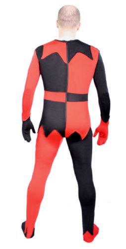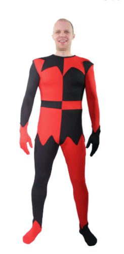 • Entire suit include black and red two colors, and one sleeve is red then the other is black, thlegs and body is the same design as sleeves;