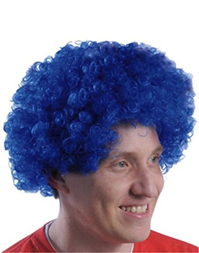 Blue curly afro wig. One size fits all, stretchy band allows for kids and adults to wear this item.