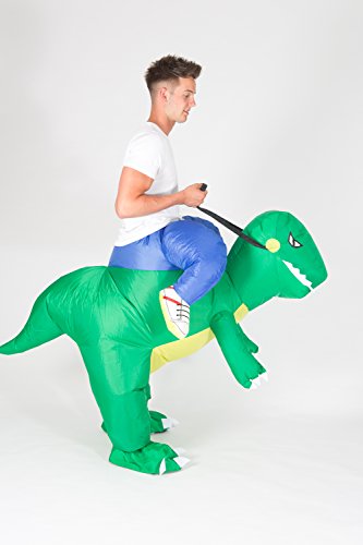 If you're looking for a great fancy dress outfit, then look no further. Our inflatable Dinosaur costume looks fantastic and gets a laugh where ever you go! Perfect for a fancy dress party this inflatable t-rex costume will make you the person to remember, and with a battery pack that can keep it inflated for up to seven hours there will be plenty of time for fun and frolics. Forget sheet ghosts and comedy wigs, if you really want to steal the show at a fancy dress party, then this costume is the way to go. Simply step inside the costume and click your battery belt clip to turn on the fan. Once zipped up, the costume inflates in seconds.