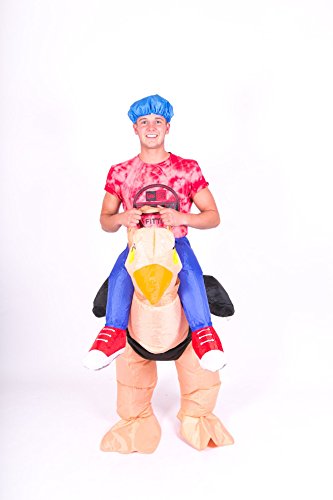 If you're looking for a great fancy dress outfit, then look no further. Our inflatable Ostrich costume looks fantastic and gets a laugh where ever you go! Perfect for a fancy dress party this inflatable costume will make you the person to remember, and with a battery pack that can keep it inflated for up to seven hours there will be plenty of time for fun and frolics. Forget sheet ghosts and comedy wigs, if you really want to steal the show at a fancy dress party, then this costume is the way to go. Simply step inside the costume and click your battery belt clip to turn on the fan. Once zipped up, the costume inflates in seconds.