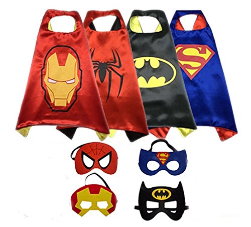 - Cape Size is roughly 70 cm x 70 cm. Each cape comes with a mask.One size, suitable for children 3-10.