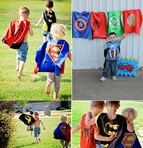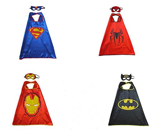 - Cape Size is roughly 70 cm x 70 cm. Each cape comes with a mask.One size, suitable for children 3-10.