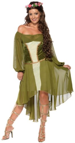 Magnífico vestido de princesa para mujer joven. Este vestido de color verde tiene unos acabados precisos. La parte delantera es de imitación de terciopelo con excelentes costuras doradas. Este disfraz también incluye la corona de flores (los zapatos se venden por separado). Tallas disponibles: Small y Medium. Perfecto para disfrazarte con tus amigos en fiestas temáticas o en carnaval, por ejemplo.