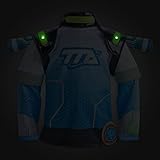 - Includes top, pants, gloves, and detachable shoulder harness Black PVC shoulder harness features padded pack, detachable ''Lazerang,'' and adjustable straps