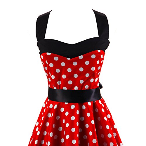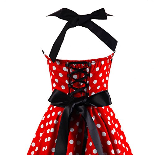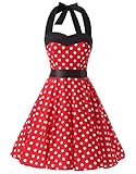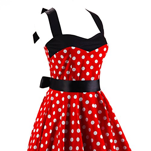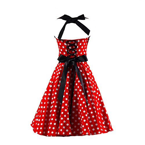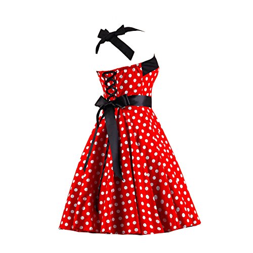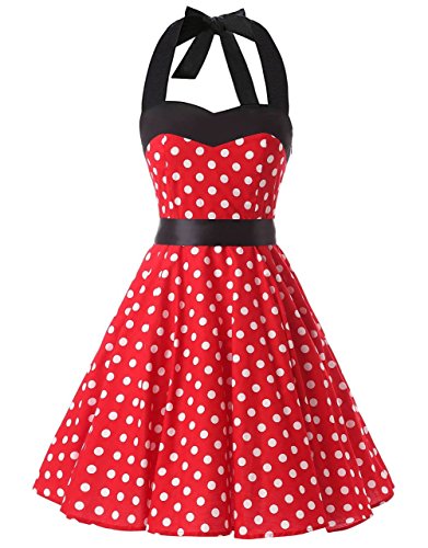 Retro 50s vintage halter pinup swing dress with sweet heart neckline, polka dot print design, suitable for cocktail, party, formal, wedding retro occasion