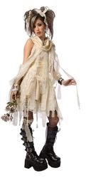 • Costume includes, a shredded look dress, faux corset, cowl and fashion bracelets.