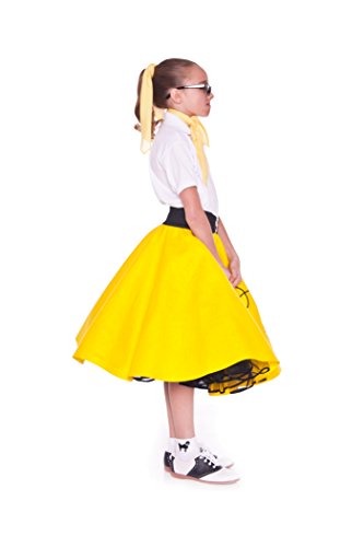 Handmade by seamstresses here in the United States, our skirts are made from 100% acrylic felt for an authentic 1950s feeling. Our poodle appliques have been professionally embroidered and are sewn onto the skirts for long lasting wear. An elastic waistband ensures that all shaking, twisting and hopping will be done in comfort! The fitting of our sizes: size 4 and 6= Small Child size waist fits 20-24″ – Length is 14 1/2″. Size 8= Medium Child waist fits 22-26″ – Length is 18″ – fits most ages 7-9. Sizes 10 and 12= Large Child size waist fits 22-28″ – Length is 21″ – fits most ages 10-12.