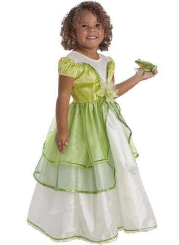 This finely detailed Lily Pad Princess dress is a beautiful addition to any girl's princess dress collection. The luxurious white and green bodice is made from stretch crushed velvet and green China silk. The skirt is a beautiful white China silk with two layers of sheer knit green fabric, for the full princess feel.