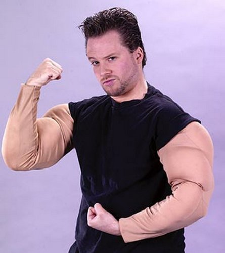 Muscle Arms Adult: Simply slip on each fabric arm for an instant pumped up look! Muscle Arms Adult is one size, fits most adults.