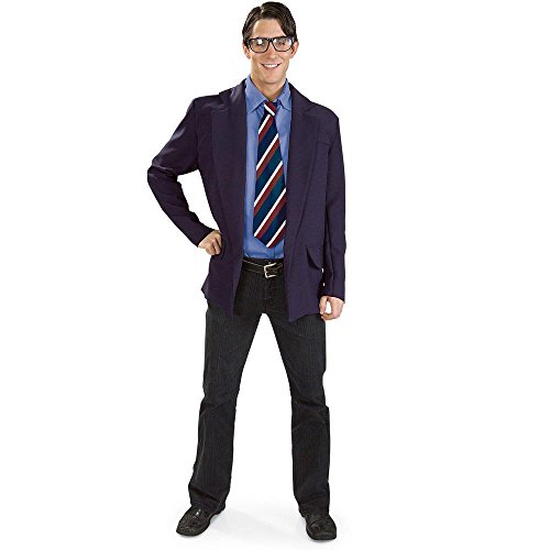 Make a fast change from Clark Kent to Superman in this reversible costume. When it's time the save the day, you will be able to rip open your mild mannered suit to reveal Superman. Includes: glasses, suit jacket with attached shirt front and tie that reverses into a Superman muscle chest. Pants and belt are not included. This is an officially licensed Superman product. 100% Polyester. Hand Wash.