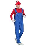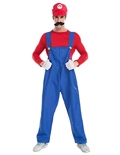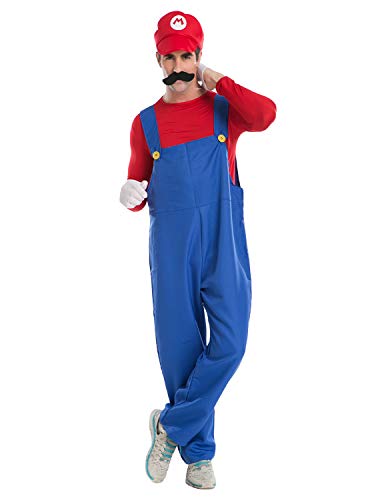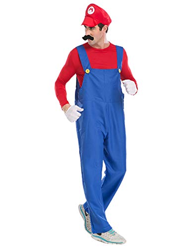 Quesera Men's Super Mario Costume Adult Cosplay Costume Mario Brothers Halloween Costume