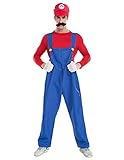 - An ideal costume outfit for Mario and Luigi character cosplay, funny 80's retro plumber gaming outfit