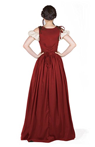 THE IRISH FULL COSTUME Fitted sleeveless bodice ~ may be worn with any style chemise Front lace-up Shoulder lace-up for better fit Lovely brocade trim (varies due to availability) Soft cotton blend material Laces in back to cinch to custom fit Chemise (in cream) ~ Elasticized waist, two wide ruffles below waist, cap sleeves SIZING: S/M = 32″ to 36″ bust and a 30″ to 34″ waist L/XL = 36″ to 42″ bust and a 34″ to 40″ waist 2XL/3XL = 42″ to 48″ bust and a 40″ to 46″ waist Length (overdress) for all sizes: 56″ (easy to hem if needed) Length (chemise) for all sizes: 52″ **Color may vary slightly from pictures