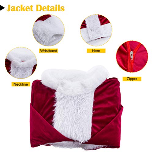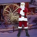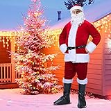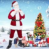 🎅Christmas Santa Claus Costume Deluxe Santa Claus Suit Cosplay Party Outfits Christmas Onesie Set Fancy Dress with Hat Belt Beard Boots, 6 Pieces🎅