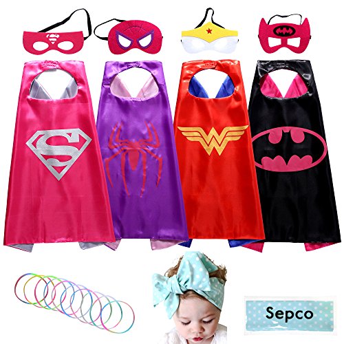 In addition to getting a set of 4 superhero capes and masks (Supergirl, Wonder woman, Batgirl and Spidergirl), 10 silicone glow bracelets and 1 girl hair band will be included FREE with your purchase.