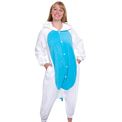 Dress to impress in these Plush Animal One-Piece Pajamas from Silver Lilly. Crafted from ultra-soft 100% polyester, this cozy bodysuit will be a hit at any party, cosplay event, or pajama sleepover. Intricate detailing on the head, body, and tail bring this character to life, so you'll be the life of the party. Two front pockets are included and are convenient for storing your eye mask, earplugs, phone or wallet. The loose fit is comfortable and won't restrict your movements, giving you the freedom to sleep, dance or perform as you please. For best results hand wash, lay flat to dry, and iron on low heat if needed. Multiple sizes available: (Small) 57-64″ (Medium) 61-69″ (Large) 65-72″ (X-Large) 69-76″