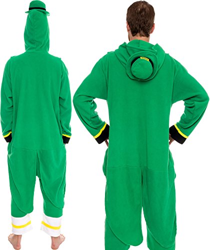 Channel the luck of the Irish when you wear this Leprechaun One Piece Pajama Costume by Silver Lilly! Crafted from ultra-soft 100% polyester, this cozy bodysuit will be a hit at any party, bar crawl, or sleepover. Each pajama set is chock full of little details, from the cuffs to the belt and bow tie, and is topped off with a hood featuring the leprechaun's jaunty and iconic cap, bringing this legendary character to life. Two front pockets are included and are convenient for storing your earplugs, phone or wallet. The loose fit is comfortable and won't restrict your movements, giving you the freedom to sleep, dance or perform as you please. Perfect for St. Patrick's Day or if you're just feeling a little mischievous, the Silver Lilly Leprechaun Pajamas will make you feel like you've found your pot of gold! For best results hand wash, lay flat to dry, and iron on low heat if needed. Multiple sizes available, see size chart for details.