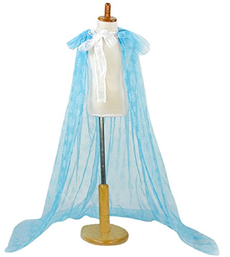 Soft and Beautiful snowflake cape inspired by Snow Queen Elsa. 39 ” in length form base of neck. Tied with soft white ribbon. Embossed white snowflakes on soft sheer mesh.
