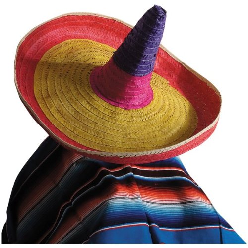 Tipico sombrero messicano in paglia intrecciata, dalle dimensioni davvero ragguardevoli, il diametro raggiunge addirittura gli 80 cm. Un copricapo d'obbligo per chiunque decida di travestirsi da messicano!