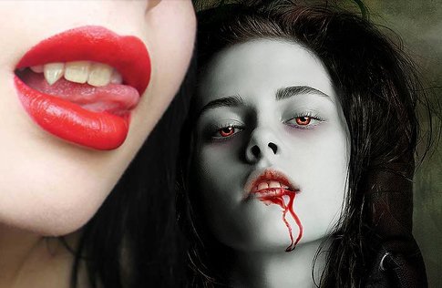 - Vampirzähne mit Abformmasse für perfekte Anpassung an die Zähne