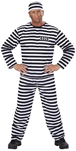 Costume di Carnevaleda carcerato. Per vestire i panni di un carcerato a strisce bianco e nere, un costume perfetto, di ottima qualità. Costume taglia M composto da casacca, pantaloni, cappello.