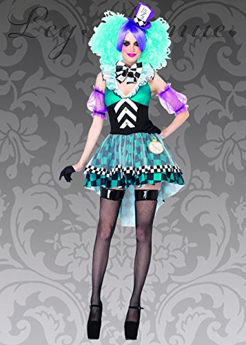 Signore adulte taglia Halloween gotico fiabesco divertimento carino maniacale Cappellaio fancy dress costume include un verde e nero striato abito Cappellaio modello a strati net sulla gonna puff viola manica braccio pezzi bowtie e un copricapo di mini Cappellaio corrispondente.