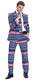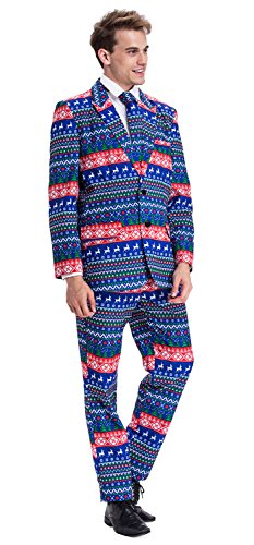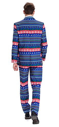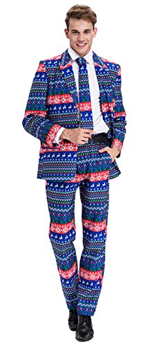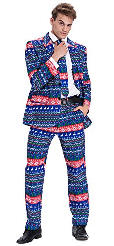 • 2.STAND OUT IN STYLE. Benefit from great style for any occasion. Boasting a classic design in a standard regular fit and featuring a unique and playful pattern, the suit is ideal for festive season fun or a dress-up party.