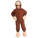 Kids will enjoy bringing the charming and mischievous monkey to life in our toddler Curious George Costume. This curious brown monkey named George is brought to live with The Man with The Yellow Hat in the big city. Our Curious George Toddler Costume includes a monkey fleece jumpsuit with attached character headpiece. the animal hand and foot pieces attach to the body with an elastic band. Watch with a smile as kids re-create original adventures and new ones in this plush Curious George toddler costume. This is an officially licensed Curious GeorgeTM product.
